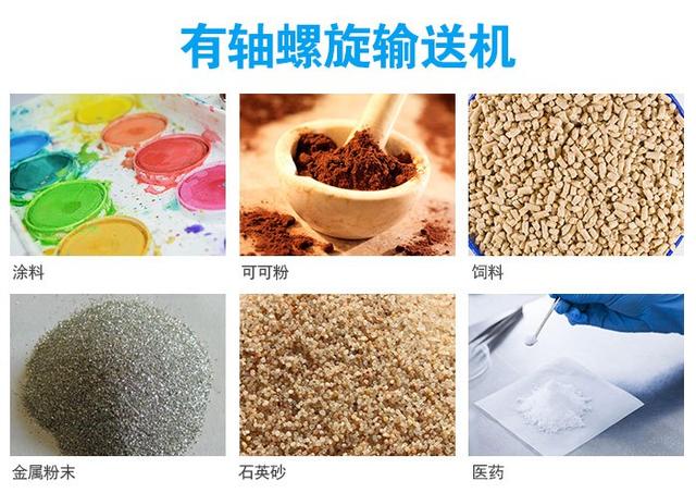 有軸葉片適用輸送的物料:粉料、小顆粒物料(如:面粉、大豆、混凝土等),如果輸送黏性物料如污泥就會粘在內管軸和葉片上,輸送塊狀的物料容易卡死。