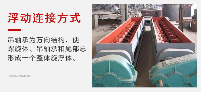 各傳動部位均采用浮動連接方式,吊軸承為萬向結(jié)構(gòu),使螺旋體、吊軸承和尾部總形成一個整體旋浮體,在一定范圍內(nèi)可以輸送阻力自由旋轉(zhuǎn)避讓,不卡料,不堵料。