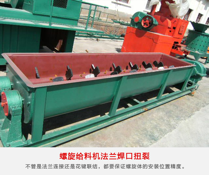 1、由于異常扭矩的產(chǎn)生,聯(lián)結(jié)法蘭焊接失效,處理方法是保證設(shè)備安裝精度,不管是法蘭連接還是花鍵聯(lián)結(jié),都要保證螺旋體的安裝位置精度,安裝后應(yīng)接線調(diào)試確定螺旋轉(zhuǎn)向,聲音有無異常。試運(yùn)轉(zhuǎn)后檢查電機(jī)、減速機(jī)、軸承溫升,一切正常后,開動(dòng)手動(dòng)螺旋料倉閘門逐漸加料,經(jīng)過調(diào)試后,使螺旋運(yùn)轉(zhuǎn)平穩(wěn)。