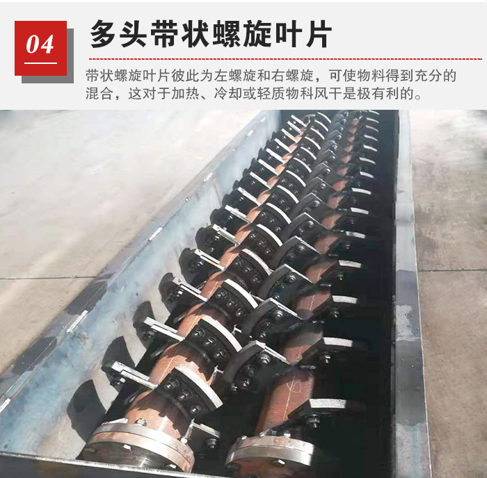 槳葉螺旋葉片可調(diào)節(jié)一定角度的槳葉螺旋可使物料得到完全混合,并可控制物料的流動(dòng)。