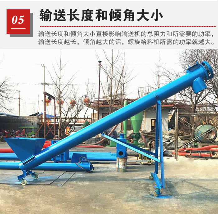 輸送長度和傾角大小直接影響輸送機(jī)的總阻力和所需要的功率,輸送長度越長,傾角越大的話,螺旋給料機(jī)所需的功率就越大,所以在選型時需要說明這一點(diǎn)。