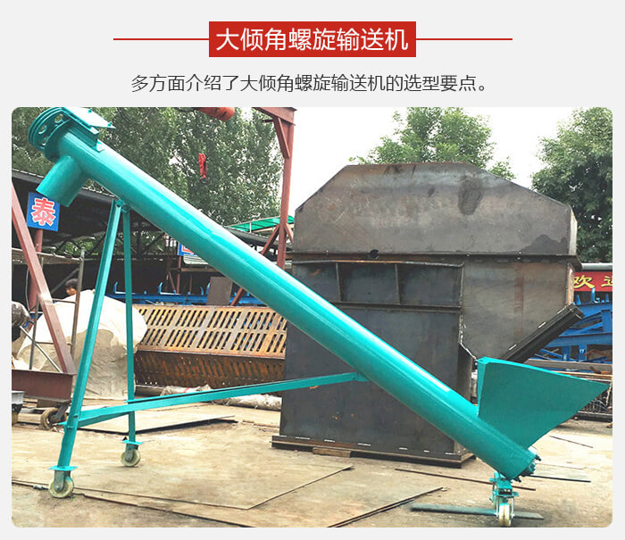 大傾角螺旋輸送機(jī)輸送長度和角度大小會對輸送機(jī)總的阻力和所需要的功率造成直接影響。如今市場上的大傾角螺旋輸送機(jī)類型多種多樣,所以在選型時一定要和廠家溝通好,視情況而選。