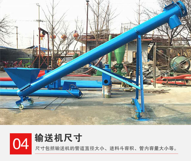 大傾角螺旋輸送機(jī)的尺寸包括輸送機(jī)的管道直徑大小、進(jìn)料斗容積、管內(nèi)容量大小等。這些尺寸都會直接波及大傾角螺旋輸送機(jī)的輸送能力,更重要的是價格的高低也受其影響。