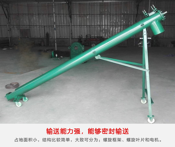 大傾角螺旋輸送機(jī):尺寸緊湊,斷面尺寸小,占地面積小,結(jié)構(gòu)比較簡(jiǎn)單,大致可分為:螺旋框架、螺旋葉片和電機(jī);