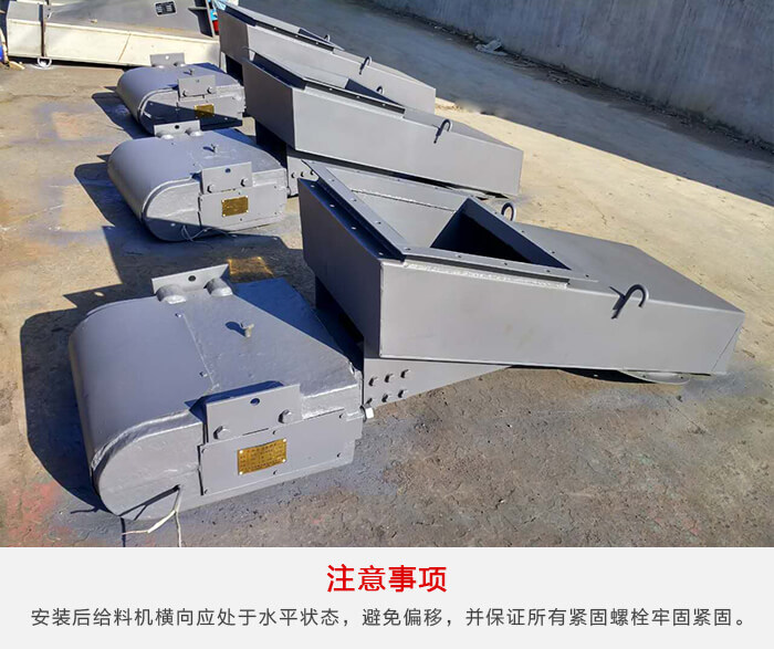 安裝后給料機橫向應處于水平狀態(tài),避免給料機工作時物料向一側(cè)偏移,并保證所有緊固螺栓牢固緊固。
