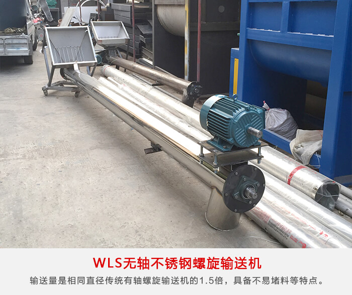 采用無軸設(shè)計,主要用來輸送易于纏繞、粘度高的物料,輸送長度可以達(dá)到60m,輸送量是相同直徑傳統(tǒng)有軸螺旋輸送機(jī)的1.5倍,具備不易堵料、性好、輸送高效、能耗低的特點。