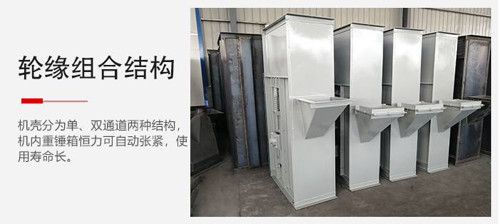 整機(jī)機(jī)殼分為單、雙通道兩種結(jié)構(gòu),機(jī)內(nèi)重錘箱恒力可自動張緊,鏈輪為可更換輪緣組合式結(jié)構(gòu),更換簡便;使用壽命長,