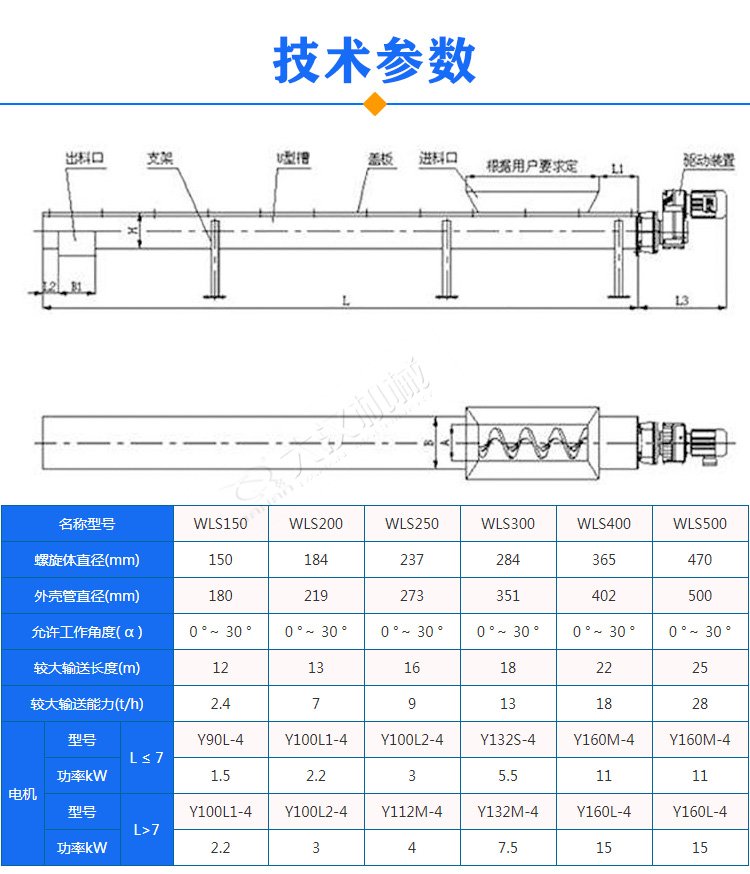 2、單臺(tái)輸送機(jī)的輸送長(zhǎng)度可達(dá)60米,輸送量是相同直徑有軸輸送機(jī)的1.5倍。