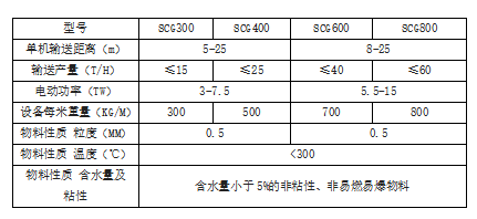 2.若輸送其它物料時,可參照下列公司換算產量 Q=a*Q’Qλ/1.6 a-折減系數約為0.5∽1。粉狀物料取小值,塊裝物料取大值。 Q’-表中所示產量λ-輸送物料的比重。