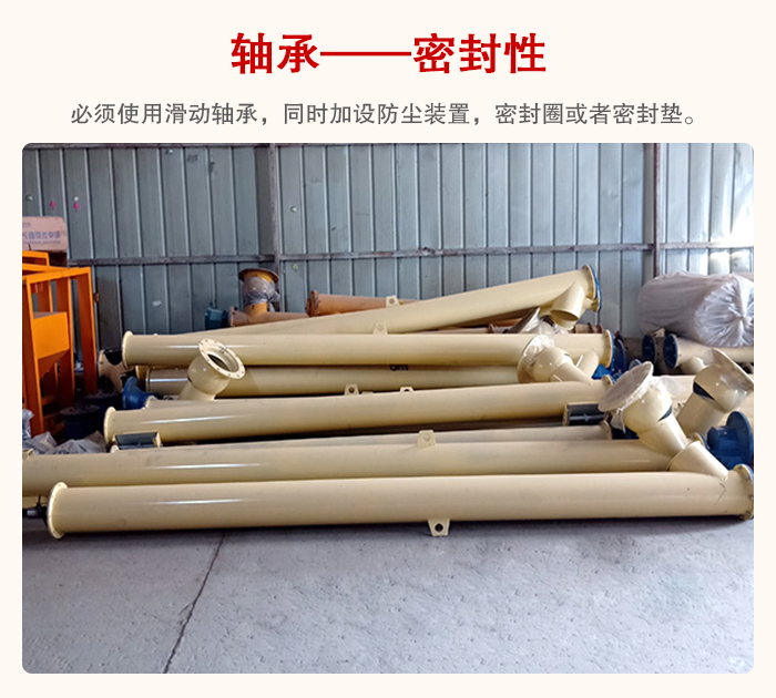 管型螺旋輸送機必須使用滑動軸承,同時加設(shè)防塵裝置,密封圈或者密封墊,這樣不會導(dǎo)致
