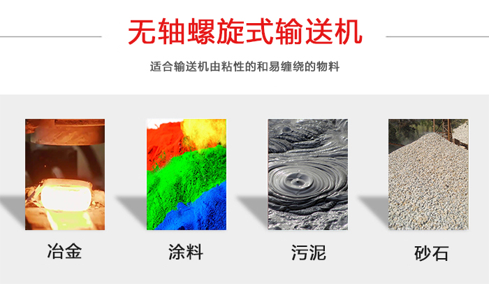有軸螺旋式輸送機(jī)適用于無粘性的干粉物料和小顆粒物料.(例如:水泥、粉煤灰、石灰、糧等)而無軸螺旋式輸送機(jī)適合輸送機(jī)由粘性的和易纏繞的物料。(例如:污泥、生物質(zhì)、垃圾等)