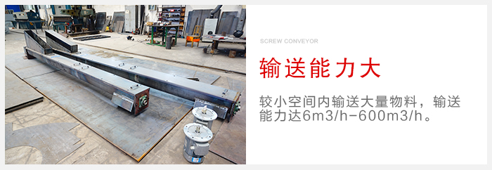 (1)螺旋式輸送機(jī)輸送能力大,高效的輸送機(jī)允許在較小空間內(nèi)輸送大量物料,輸送能力達(dá)6m3/h--600m3/h。