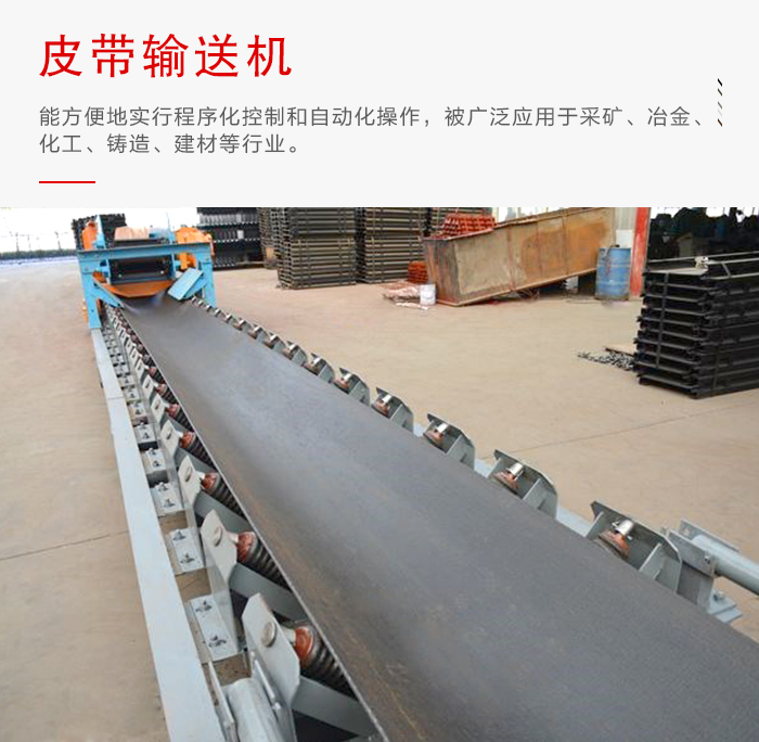 皮帶輸送機(jī)又叫膠帶輸送機(jī),能方便地實(shí)行程序化控制和自動(dòng)化操作,皮帶輸送機(jī)廣泛應(yīng)用于采礦、冶金、化工、鑄造、建材等行業(yè)的輸送和生產(chǎn)流水線以及水電站建設(shè)工地和港口等生產(chǎn)部門,主要用于連續(xù)或間歇運(yùn)動(dòng)來(lái)輸送100KG以下的物品或粉狀、顆狀物品,其運(yùn)行高速、平穩(wěn),噪音低,并可以上下坡傳送,具有輸送能力強(qiáng),輸送距離遠(yuǎn),結(jié)構(gòu)簡(jiǎn)單易于維護(hù)的優(yōu)勢(shì)。
