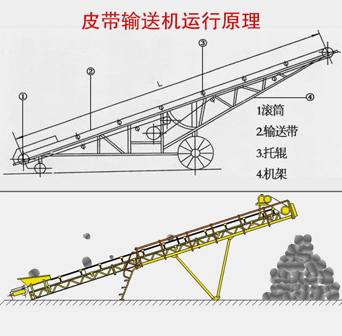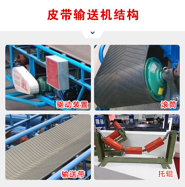 皮帶輸送機(jī)主要由輸送帶,托輥、滾筒、松緊裝置等部分組成。